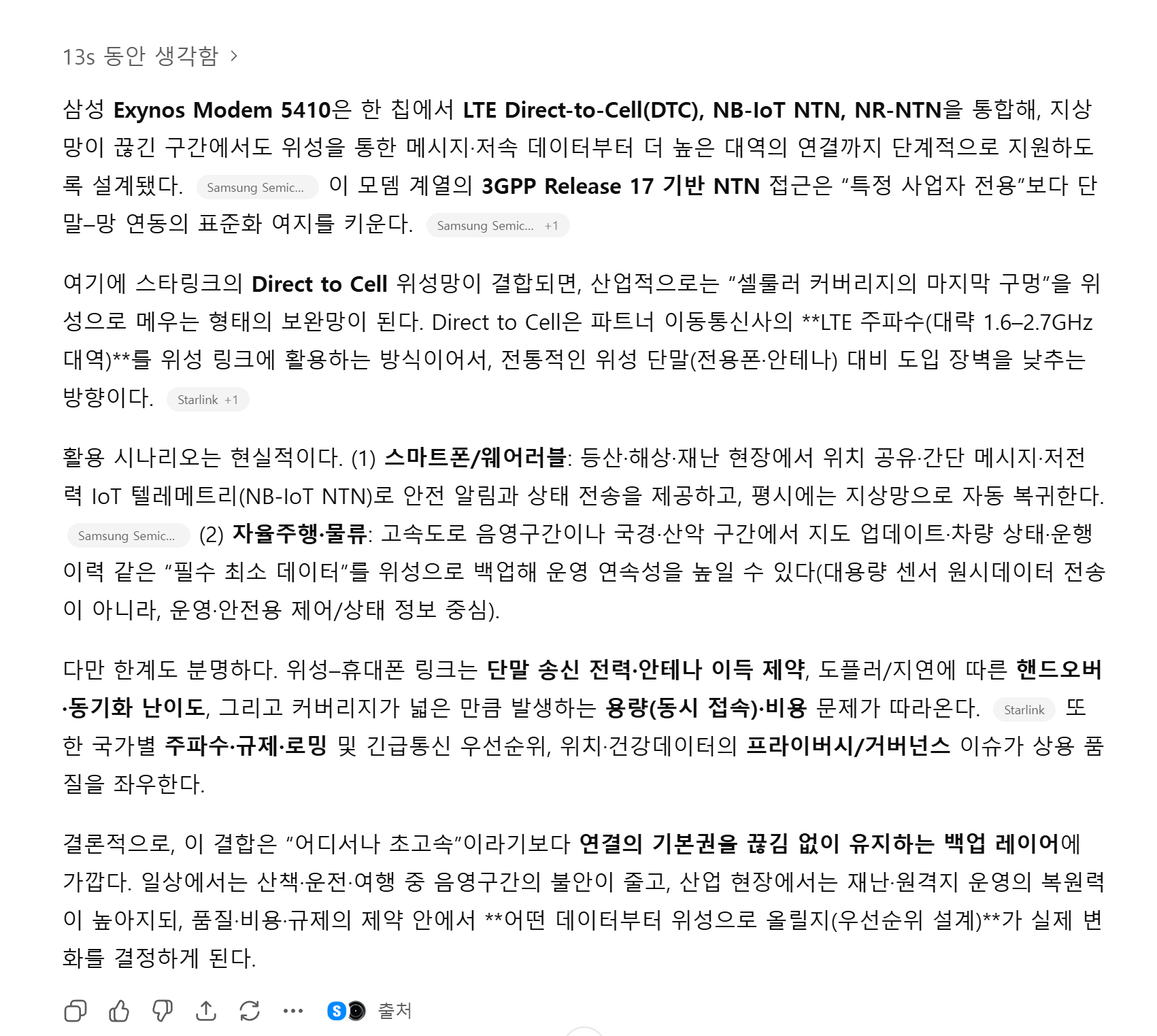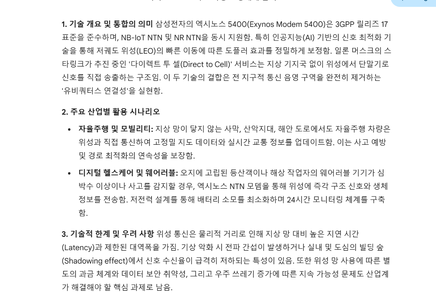 엑시노스 5410과 스타링크를 바라보는 세 AI의 시선 비교